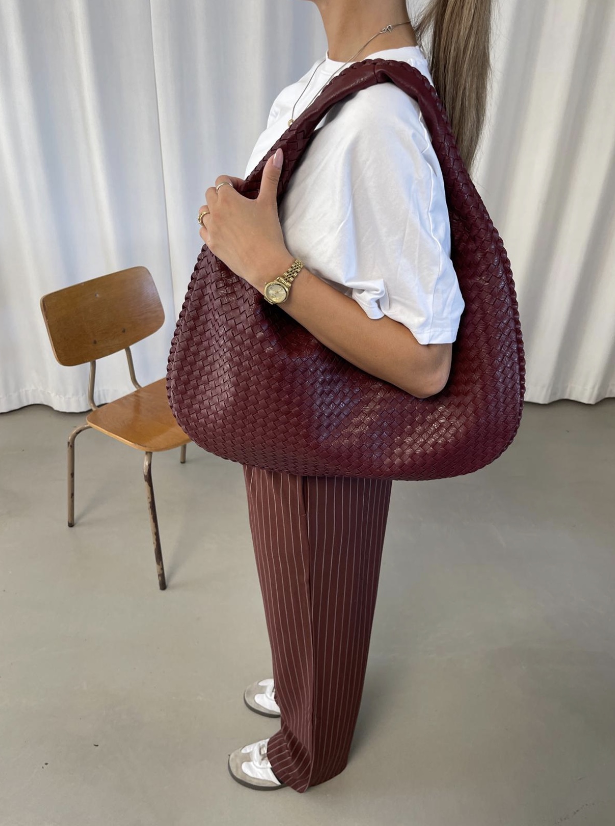 Dine nye Copenhagen Skuldertaske er en velkendt en og har rigtig mange anvendelige gøremål i din hverdag. Copenhagen skuldertaske har en rund form og er udført i et vævet/flettet design. Tasken har et stort hovedrum med lynlåslukning, og to mindre rum med lynlås inde i tasken samt en lille åben lomme. Copenhagen tasken er meget rumlig, og kan endda have plads til en Macbook 13″ og meget mere end bare det.