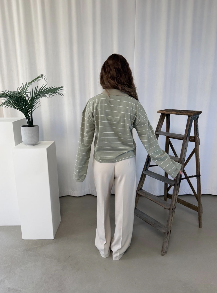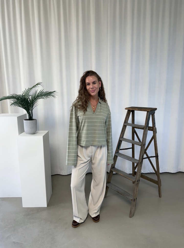 Vores stribede polo er det sidst nye på hylden. De lyse farver kombineret med den tynde hvide strejf og lys grønne krave skaber et smukt, og stadigvæk viser poloen et afslappet look. Den kan styles med rigtige mange styles så som f.eks. casual jeans, finere bukser eller en enkel nederdel – perfekt til både hverdagsbrug og mere formelle anledninger.