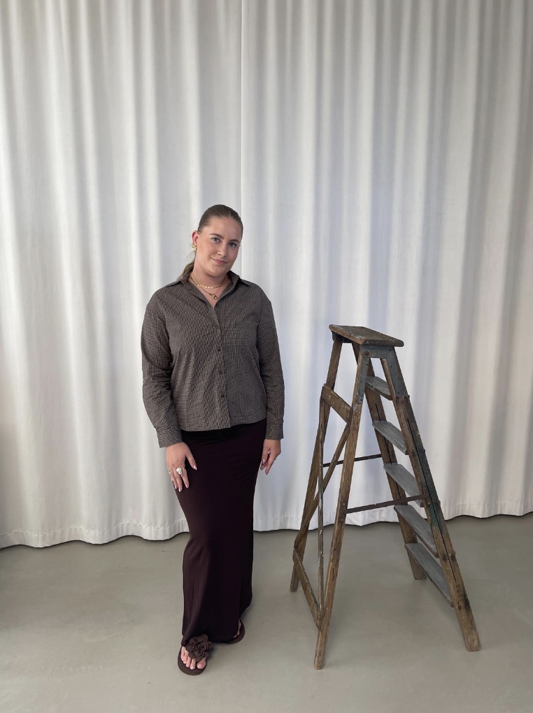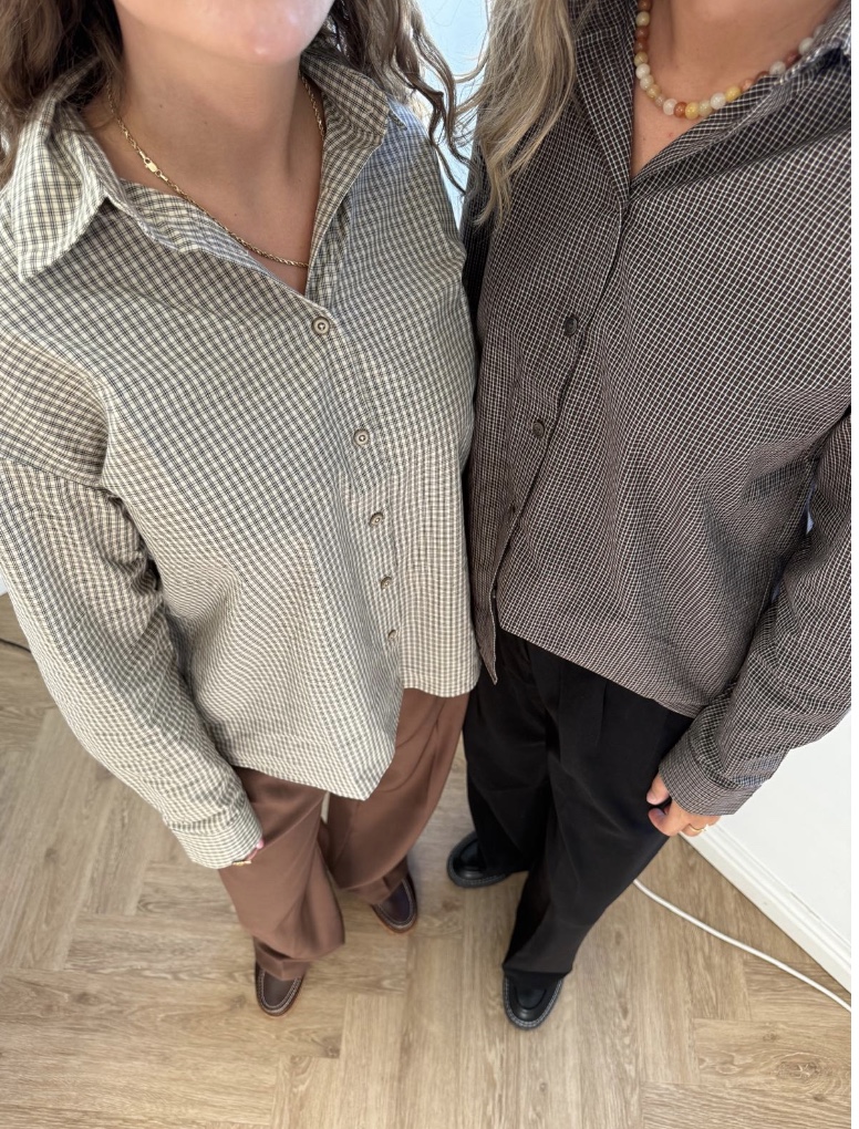 LILY cropped skjorte med ternet mønster – brun