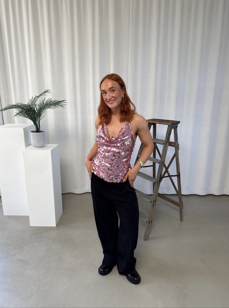 Føl dig funklende og elegant med Waterfall Saga glimmertop med glitter. Lad dig forføre af det smukke design som Waterfall Saga glimmertop invitere til. Med sin moderne åbne V-hals og påførte pailletdetaljer og åben ryg, er Waterfall Saga et perfekt valg til specielle lejligheder.